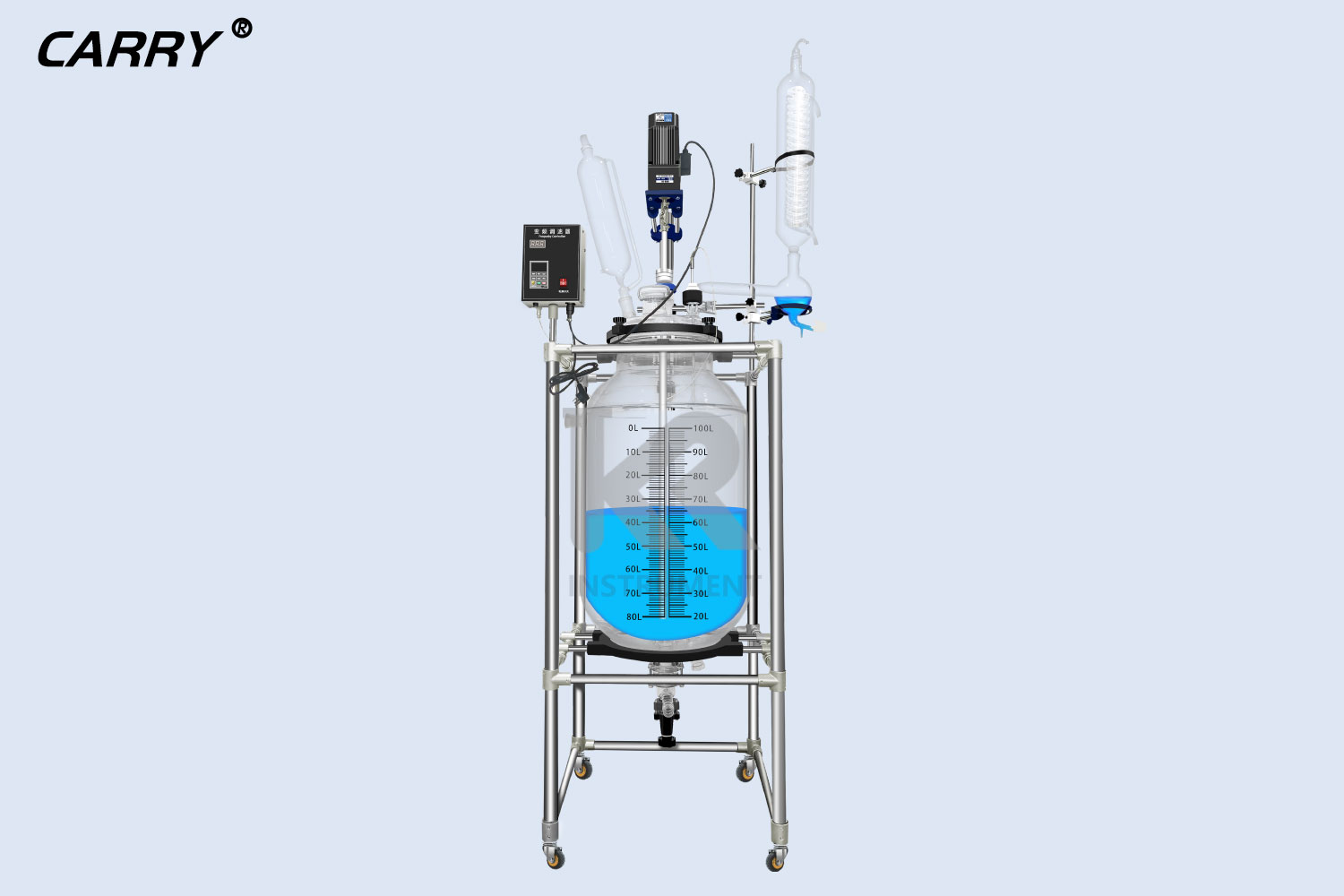 100L單層玻璃反應(yīng)釜具有電動(dòng)恒速攪拌系統(tǒng)、冷凝、滴加系統(tǒng)、加熱浴鍋。在...