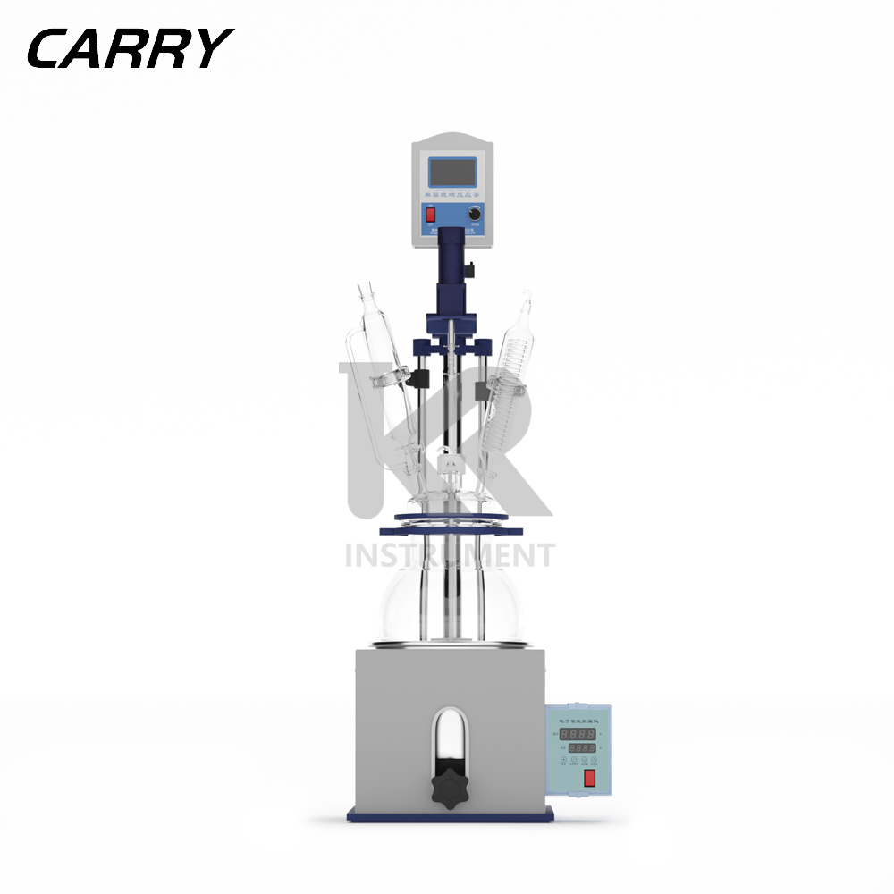 1L單層玻璃反應(yīng)釜具有電動(dòng)恒速攪拌系統(tǒng)、冷凝、滴加系統(tǒng)、加熱浴鍋。在攪拌...