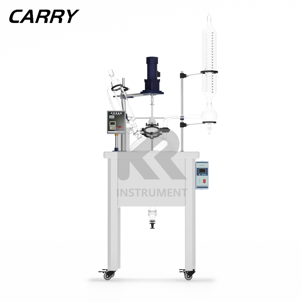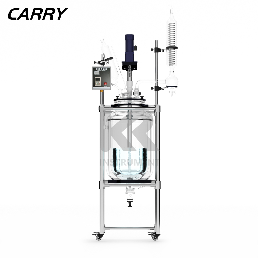 50L雙層玻璃反應(yīng)釜具有電動(dòng)恒速攪拌系統(tǒng)、冷凝、滴加系統(tǒng),釜體夾層需外接...
